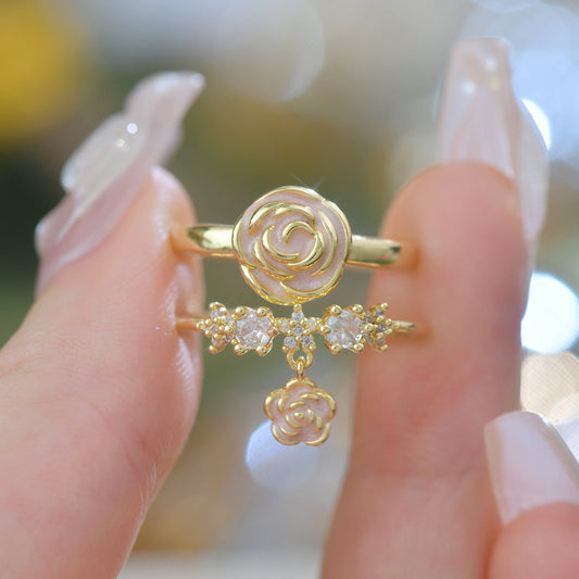 Dainty jewelry pieces adorned with enchanting motifs of flowers, butterflies, leaves, and...
