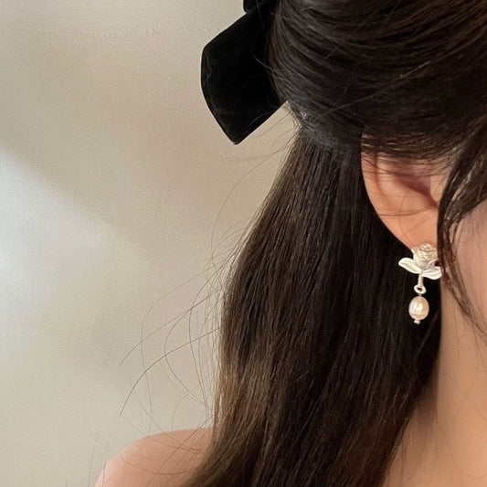 Silver Bow Earrings (Pink/Clear) - Caroline