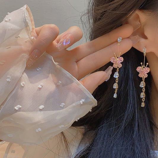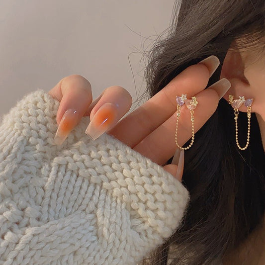 Purple Flower Ribbon Drop Earrings - Vivienne